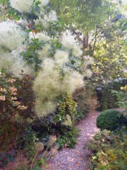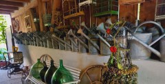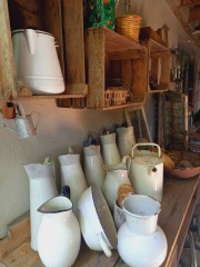 Pierrettes Leidenschaft ist die englische Gartenkunst, die sich in jedem Winkel ihres Gartens poetisch ausdrückt. Neben einem Wasserspiel, Skulpturen, kleinen und grösseren, an Ästen hängenden Kronleuchtern und Windspielen findet sich an vielen Ecken eine weitere Leidenschaft von Pierrette: Sie sammelt alte metallene Giesskannen in allen möglichen Grössen.