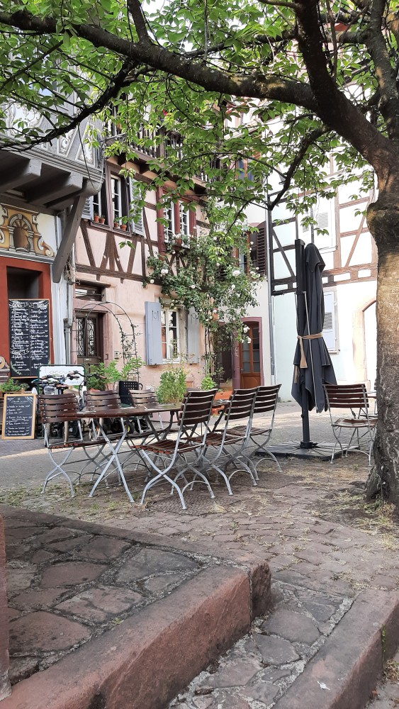 Die Gastgeberin kümmert sich nicht nur um das leibliche Wohl ihrer Gäste am Morgen, sondern hat auch individuelle Tipps für Ausflugsziele, Events und Restaurantempfehlungen in der Region. Für den ersten Abend reserviert sie uns einen Tisch auf der Terrasse des Restaurants «La Couronne» in Scherwiller. Der kleine Ort mit den für die Region typischen Fachwerkbauten liegt an der Elsässischen Weinstrasse, ca. 20 km von Diebolsheim entfernt, und gilt als Hauptstadt des Rieslings.
