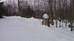 Die Rast stellt sich kurze Zeit später als Motivationsbremse heraus – wir sind eher müde, als gestärkt. Auch geht es wieder recht bergauf durch den Wald, für einen Moment besteht die Überlegung die Tour abzubrechen. Dann aber planen wir erst einmal St. Barbara anzusteuern, um dort zu entscheiden, ob wir weiterlaufen.